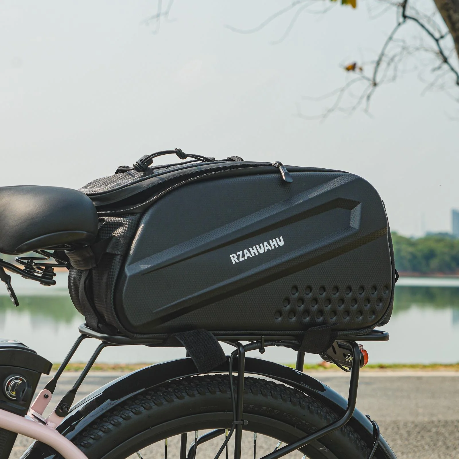 Comes with both a shoulder strap and a carrying handle for off-bike portability. Whether you’re commuting, camping, or hitting the trail, this trunk bag is your reliable ride partner.