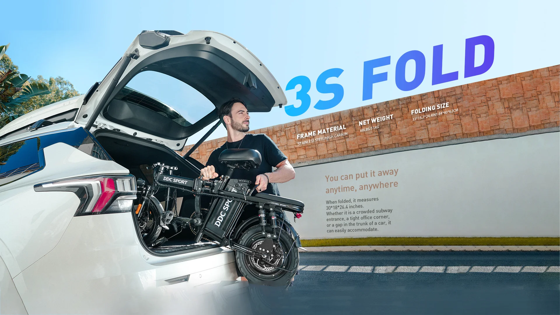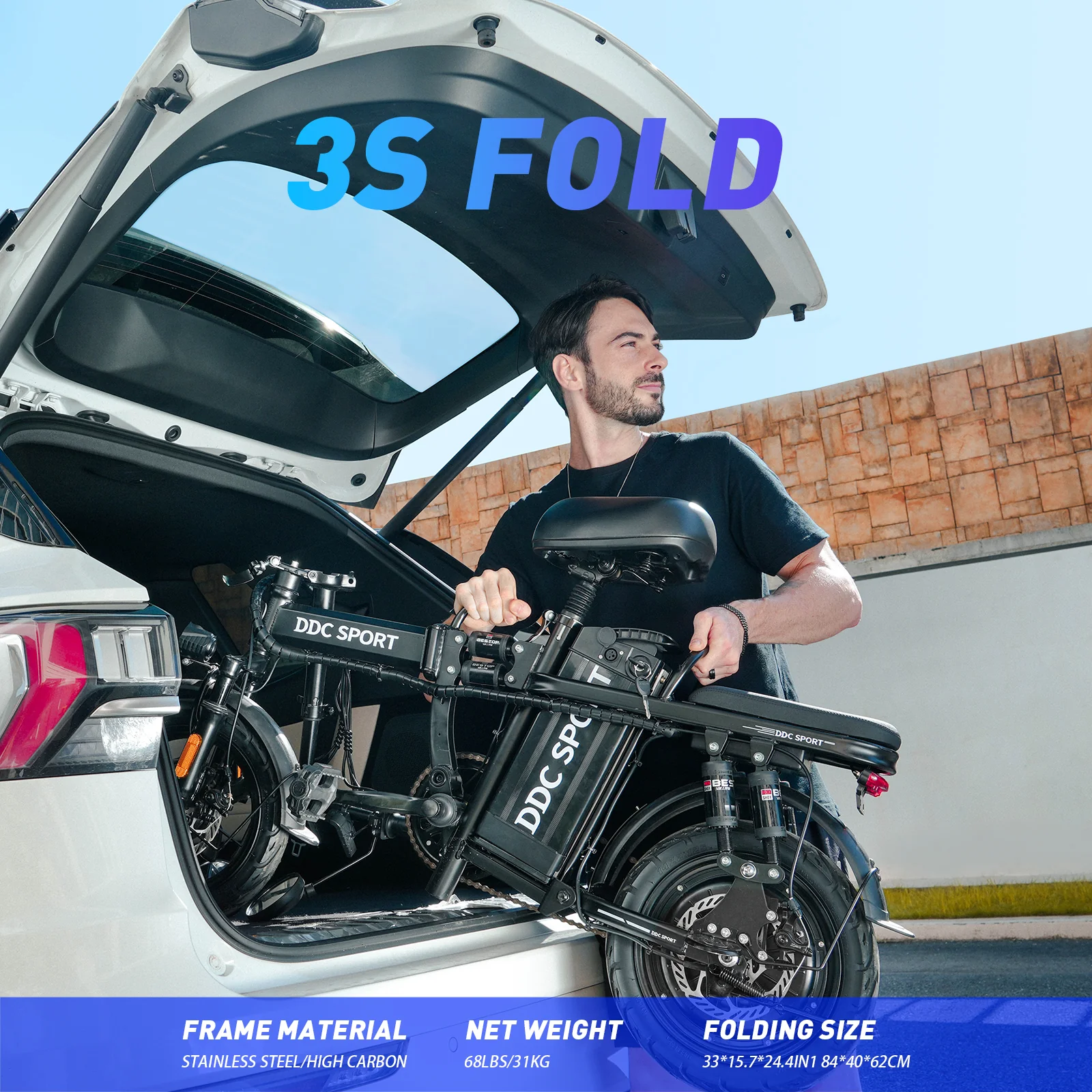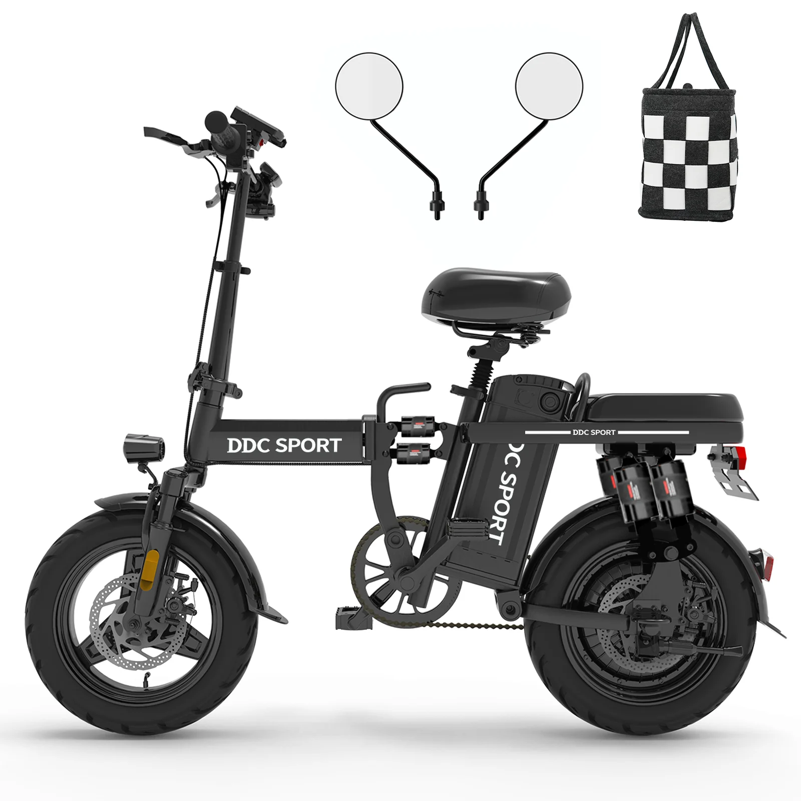 DDC Z1 1000W Folding Electric Bike – 48V 20Ah Battery, 14″ Urban E-Bike for Adults with Removable Battery & 10-Point Suspension