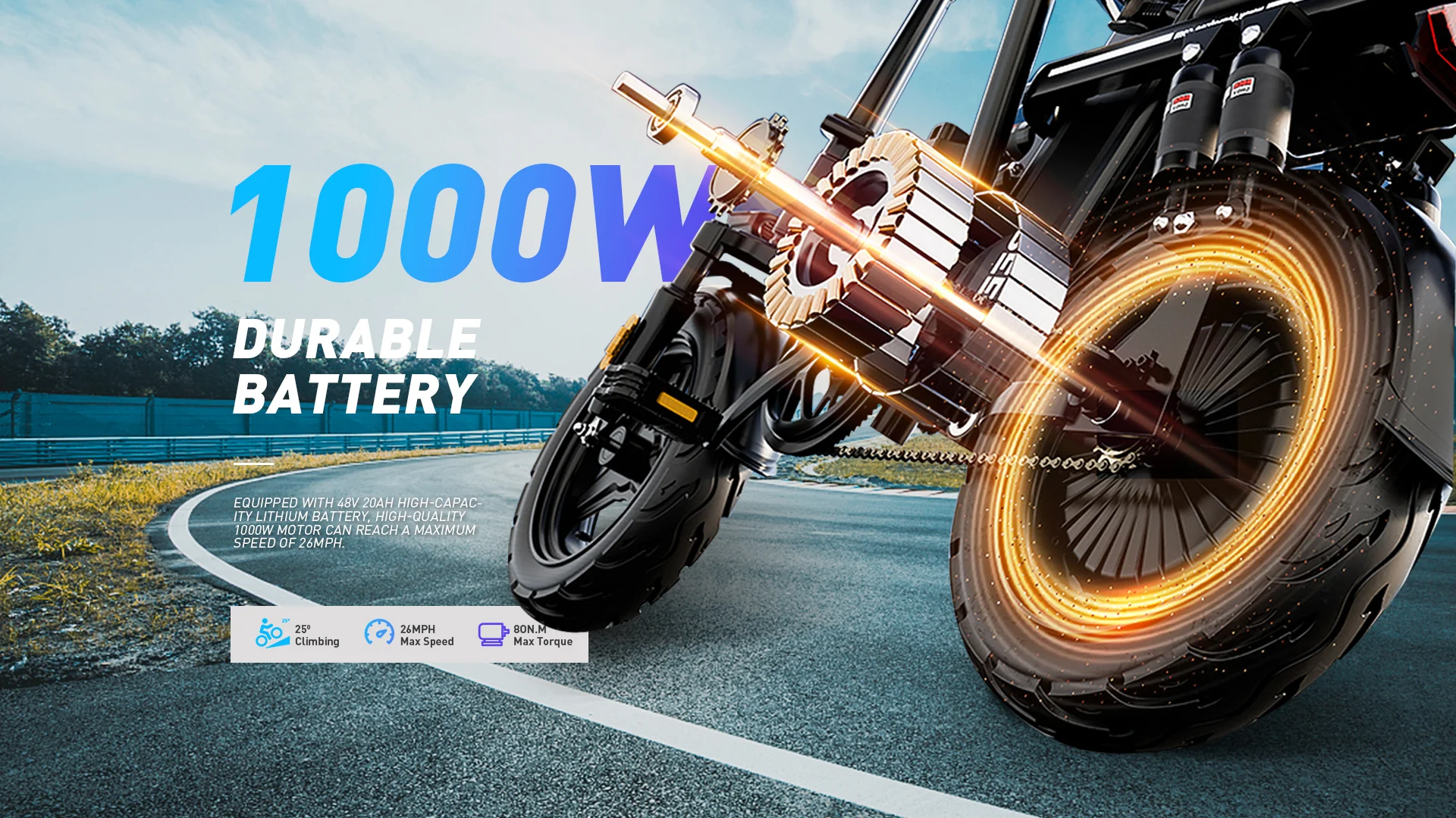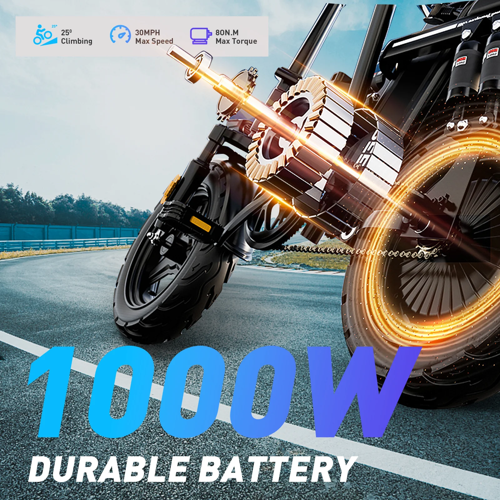 Experience thrilling rides with the Z1’s robust 1000W motor, reaching top speeds of 26 MPH. Whether you’re navigating urban streets or exploring the outdoors, this e-bike delivers performance and reliability.